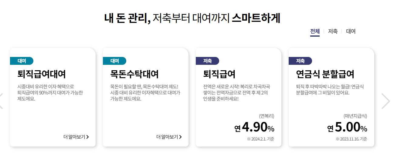 군인공제회는 회원의 재정적 필요에 맞춰 설계된 다양한 금융 상품과 맞춤형 복지 혜택을 제공합니다. 군인공제회의 서비스는 크게 저축 상품, 대여 상품, 연금 상품, 그리고 복지 프로그램으로 나눌 수 있으며, 각각의 특징은 다음과 같습니다.