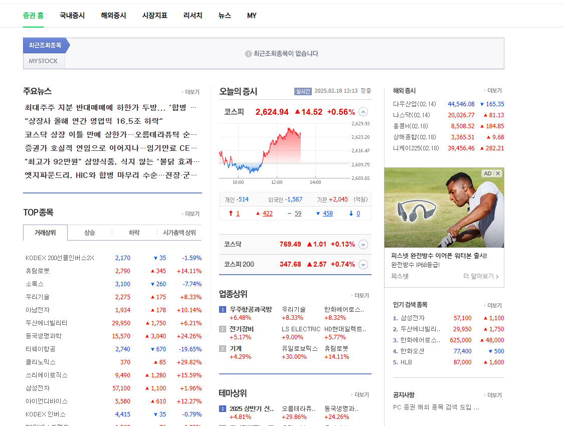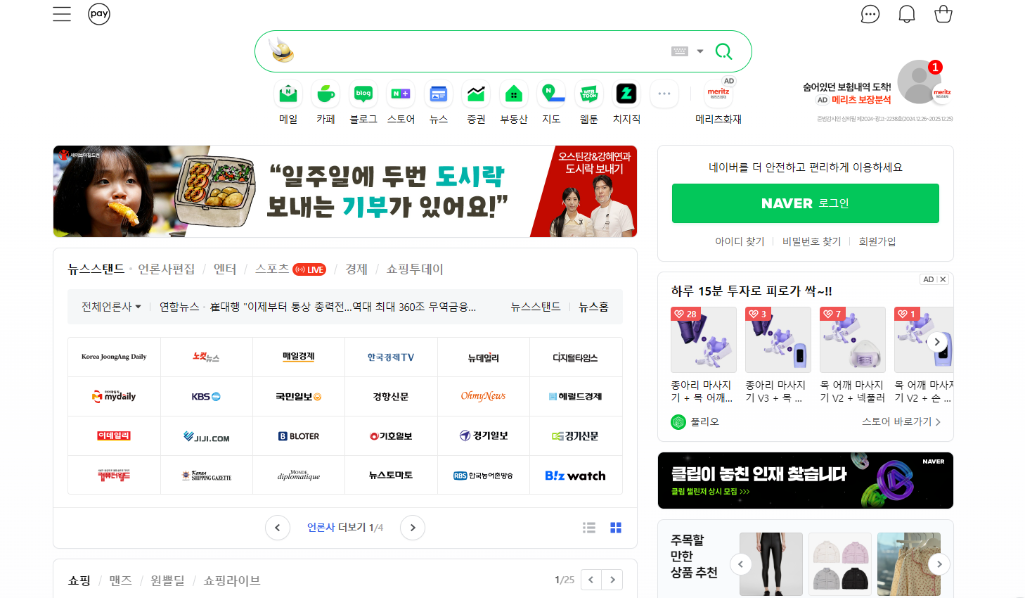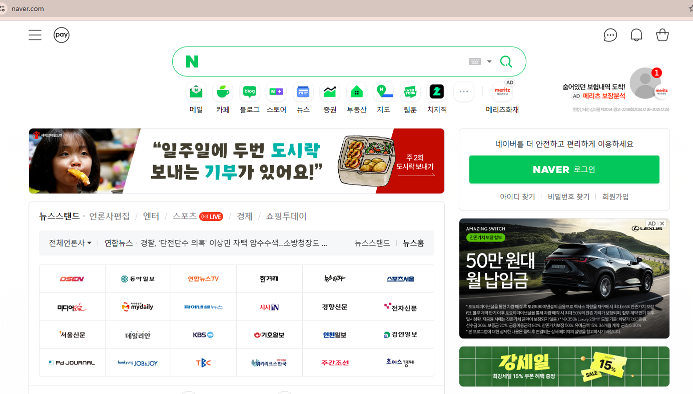 네이버 메인 페이지에서는 실시간 뉴스, 날씨, 주식 시세 등을 한눈에 볼 수 있습니다. 별도로 뉴스를 찾거나 날씨 애플리케이션을 실행할 필요 없이 최신 정보를 쉽게 확인할 수 있어 편리합니다.