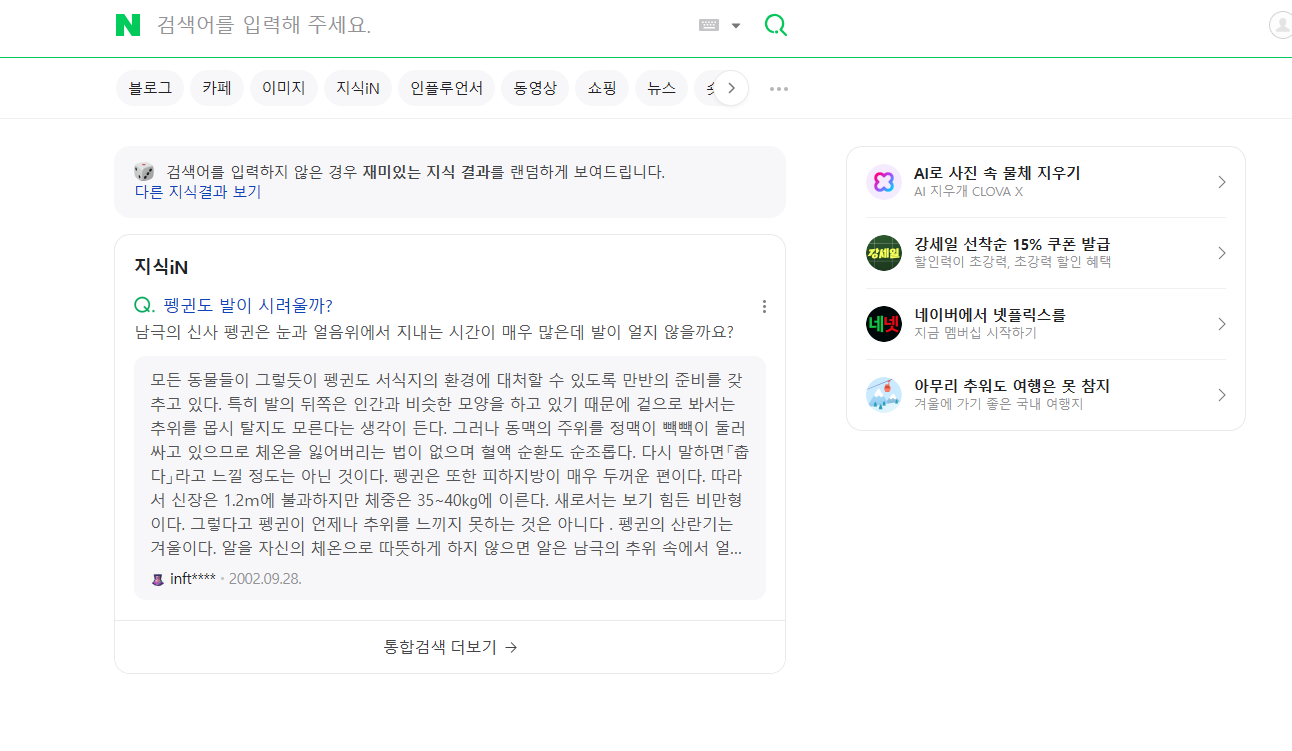 네이버(Naver)는 다음(Daum)과 함께 대한민국을 대표하는 포털 사이트로, 검색 엔진뿐만 아니라 뉴스, 카페, 블로그, 지식인 등 다양한 서비스를 제공하는 플랫폼입니다. 많은 사람들이 네이버를 기본 포털로 사용하며, 인터넷을 열 때마다 네이버로 바로 이동할 수 있도록 시작페이지로 설정하는 경우가 많습니다.