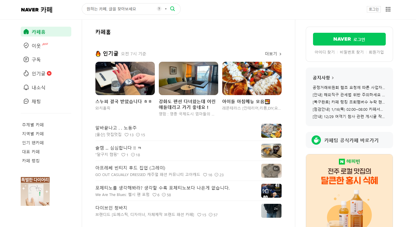 네이버 블로그와 카페는 대한민국 인터넷 커뮤니티의 중심지 역할을 하고 있습니다. 개인 블로거들이 다양한 정보를 공유할 수 있도록 지원하며, 네이버 카페는 특정 관심사를 가진 사용자들이 모여 활발한 토론과 정보를 교환할 수 있는 공간을 제공합니다.
