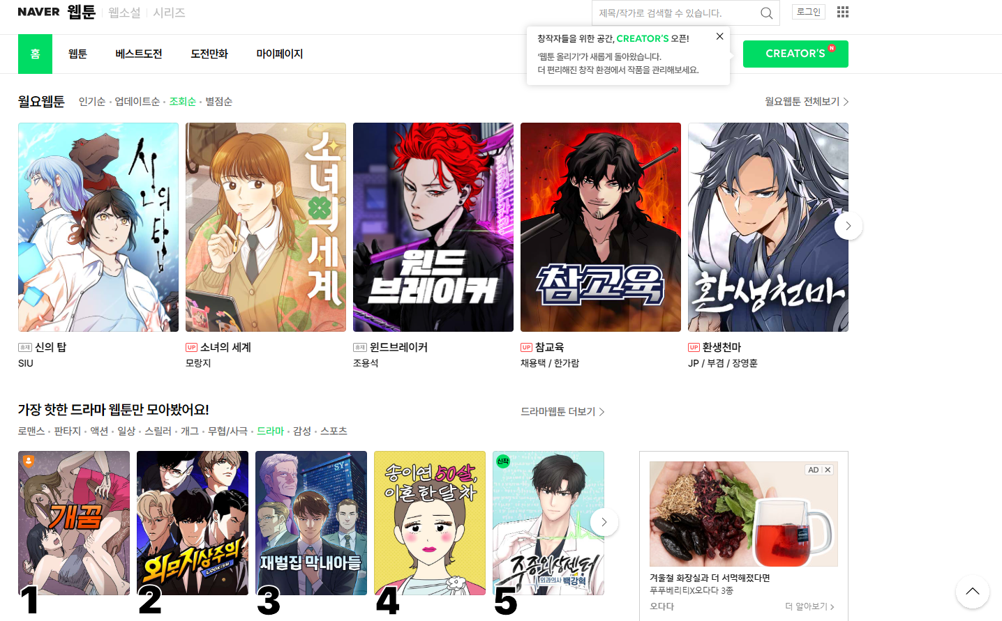 5. 네이버 웹툰 & 브이라이브(V LIVE)