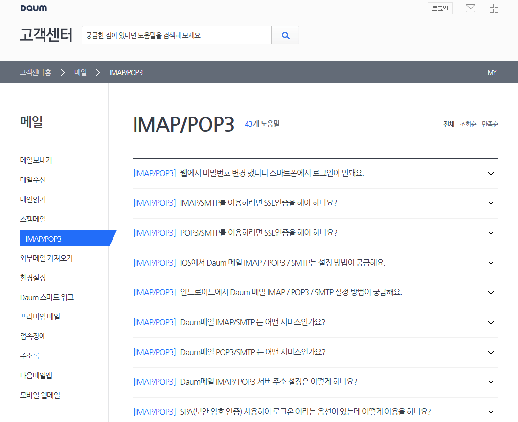 답변2) Daum 메일은 스팸 메일이 발송되는 계정에 대해 아이디 도용으로 의심하여 보호조치를 적용하고 있습니다.