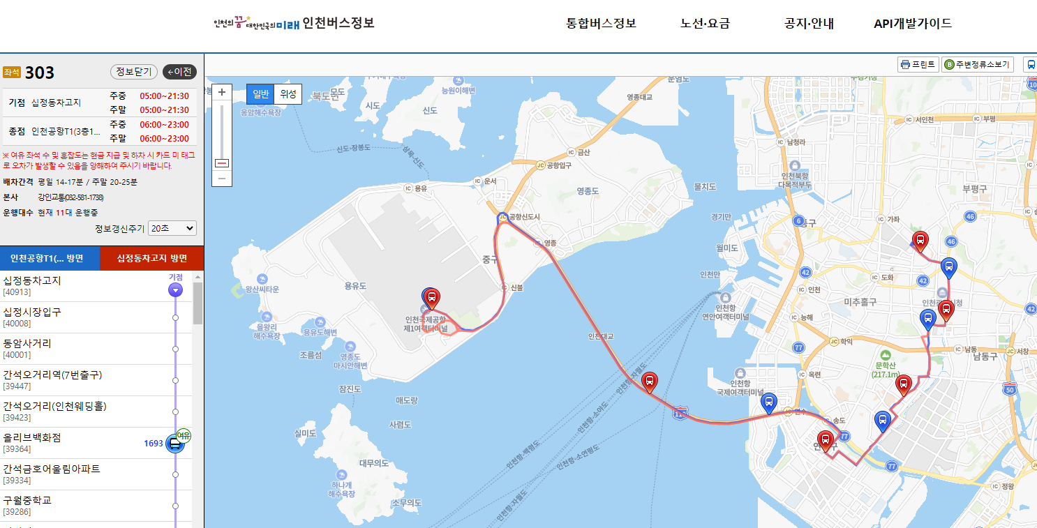 - 303번: 송도 ↔ 인천공항 송도국제도시와 인천공항을 빠르게 연결하며, 송도가는 여행객들에게 필수적인 노선입니다.