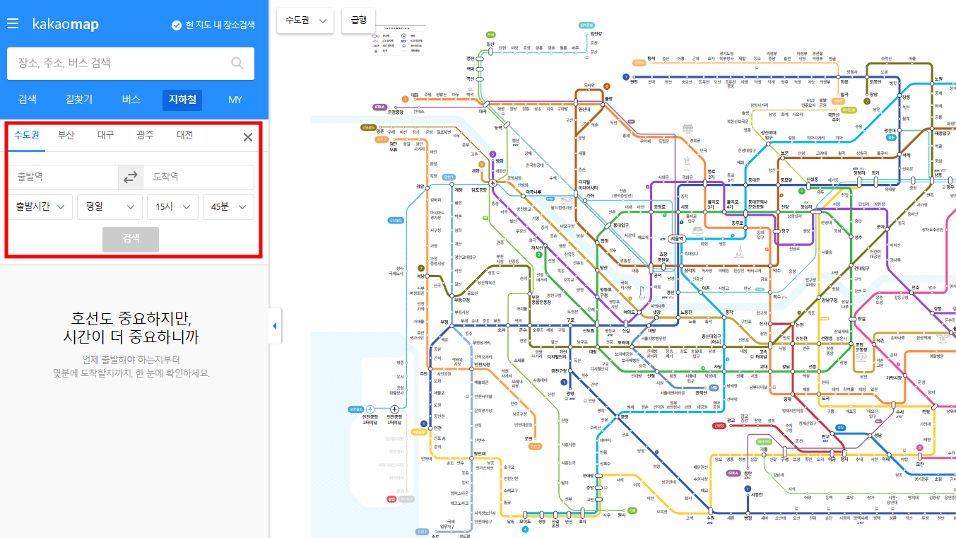 출발지와 도착지를 입력하면 가장 빠르고 편리한 대중교통 경로를 추천합니다. 실시간 도착 정보 제공: 버스와 지하철 도착 예정 시간을 실시간으로 확인할 수 있어 보다 정확한 일정 관리가 가능합니다. 역 주변 정보 제공: 특정 지하철역이나 버스정류장 주변의 맛집, 편의시설, 주요 명소를 함께 안내합니다.