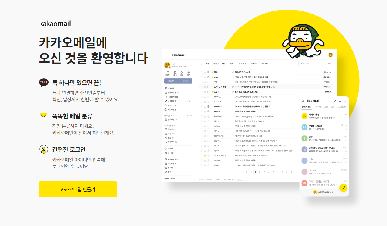 - 장점: 하나의 카카오 계정으로 다양한 서비스를 활용 가능 향상된 보안 시스템 적용 모바일 환경에서 더욱 편리한 사용 가능 AI 기반 스팸 필터링 도입으로 스팸 메일 감소