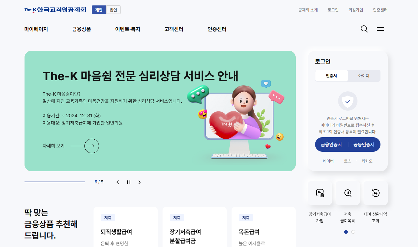 - 상담 서비스: 재정 상담, 심리 상담 등 교직원들이 필요로 하는 다양한 상담 서비스를 통해 교직원의 정신적 안정과 경제적 안정 모두를 돕고 있습니다.